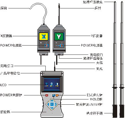 YTC6220 高壓無線核相儀又名全智能無線高壓語音核相儀、無線高壓核相器,簡稱核相儀或核相器,由無線接收器、探測器、伸縮絕緣桿等組成。接收器采用3.5寸真彩液晶屏,同屏顯示核相結(jié)果、相位、頻率、向量圖指示,有“X信號正常、Y信號正常、同相、異相”等語音提示,清晰直觀。空曠地面核相距離可達(dá)1000m遠(yuǎn),能對10V~550kV的電壓線路全智能核相,其中35kV及以下的裸導(dǎo)線可以直接接觸核相,35kV以上的裸導(dǎo)線采用非接觸式核相,非接觸核相是將探測器逐漸靠近被測導(dǎo)線,當(dāng)感應(yīng)到電場信號時就可以完成核相,這樣無需直接接觸高壓導(dǎo)線,更加安全!本核相儀同時具有高壓驗電器、高壓相位表、高壓相序表的功能,可以用于驗電、相序測試,變壓器組別判斷等。