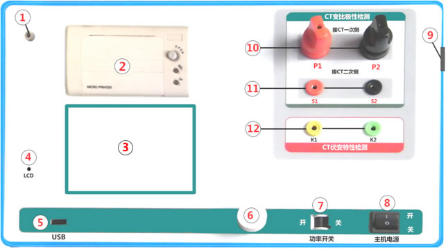 11 ——CT變比試驗時二次側接入端口        12 ——伏安特性試驗時電壓輸出端口