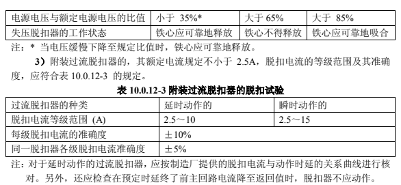 2)附裝失壓脫扣器的,其動作特性應符合表 10.0.12-2 的規定;