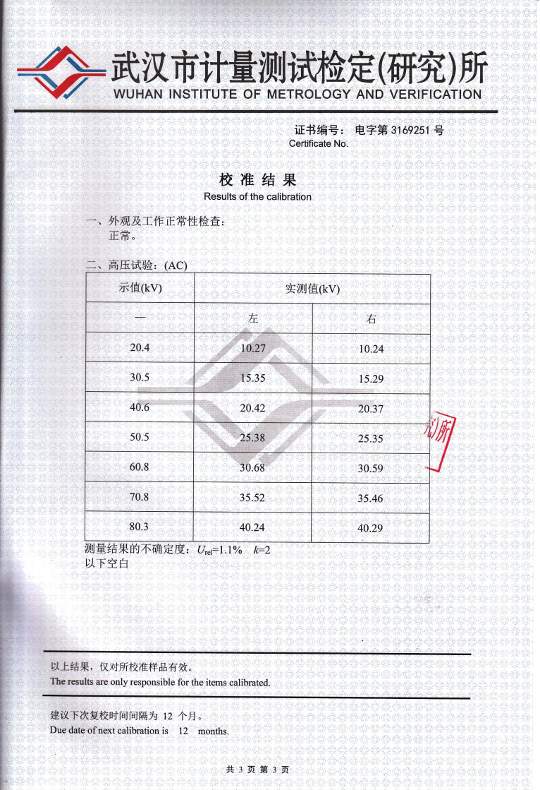 全自動測量:設置完畢,只需按測試鍵即可完成全部工作(自動攪伴、自動靜置、自動升壓、自動降壓、自動記錄擊穿電壓值、自動計算各次平均擊穿電壓值、自動打印測量結果)。試驗完畢,聲音提示。