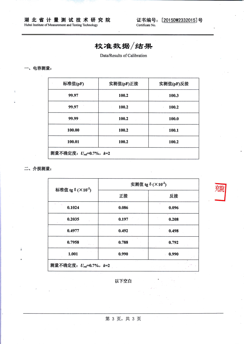 準(zhǔn) 確 度 tgδ: ±(讀數(shù)*1.0%+0.06%)