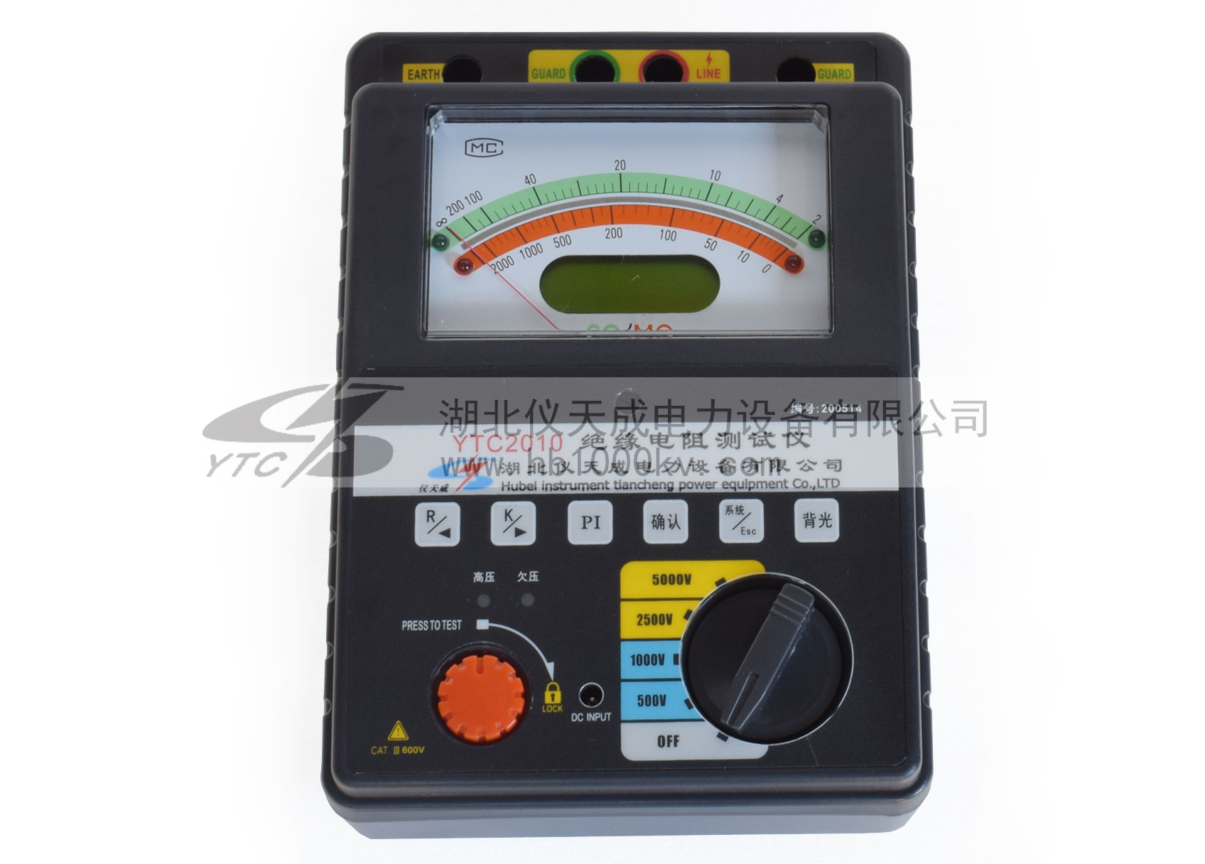 YTC2010智能雙顯絕緣電阻測試儀具有多種電壓輸出等級(500V、1000V、2500V、5000V)、容量大、抗干擾強、指針與數(shù)字同步顯示、交直流兩用、操作簡單、自動計算各種絕緣指標(吸收比、極化指數(shù))、各種測量結(jié)果具有防掉電功能等特點。