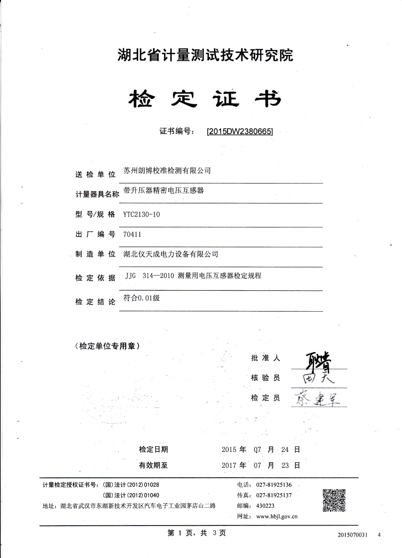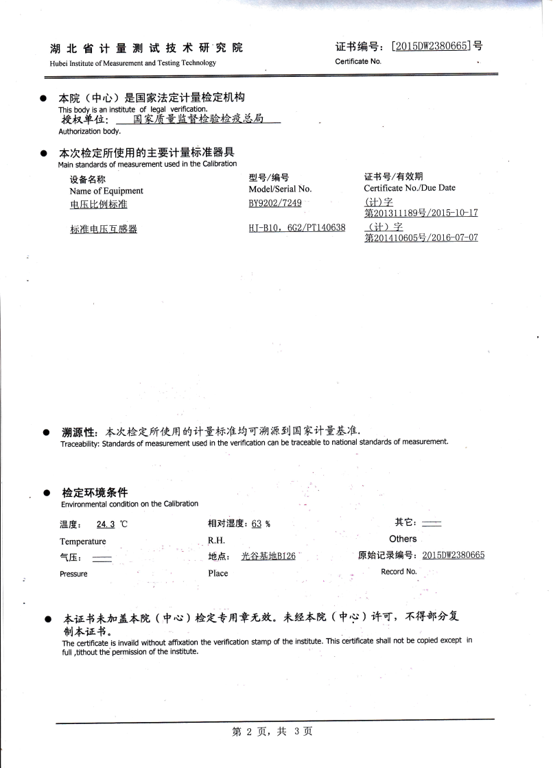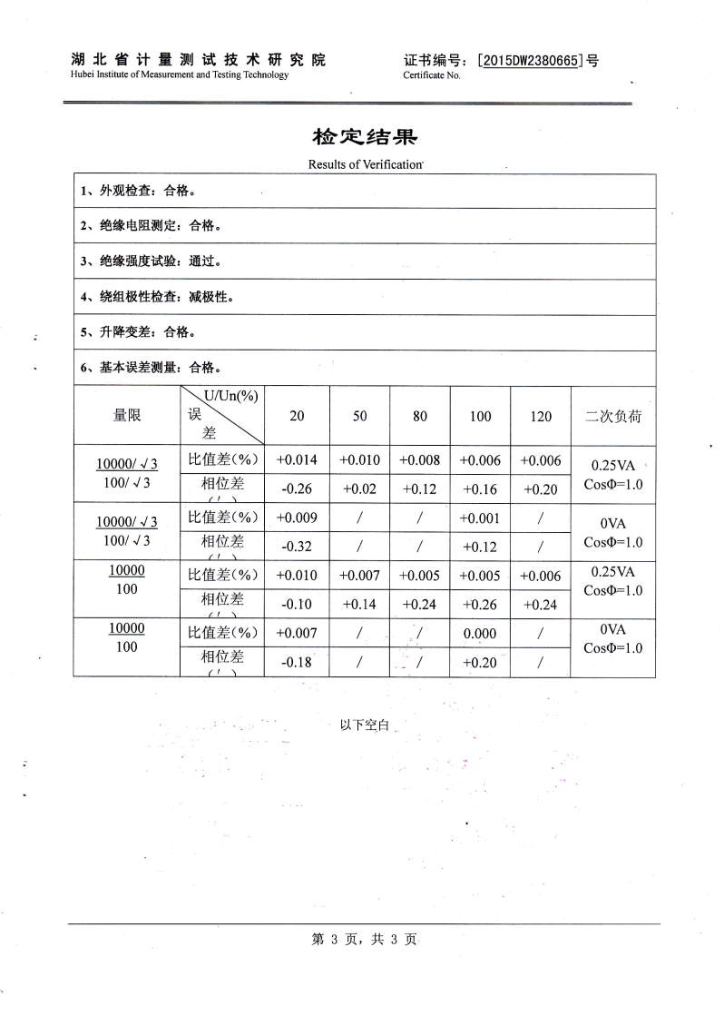 0.05級 即在額定負(fù)荷的情況下: 當(dāng)電壓為80%Un至120% Un的范圍內(nèi), 比差不大于0.05%,角差不大于2', 當(dāng)電壓為50% Un 時,比差不大 于0.075%,角差不大于3', 當(dāng)電壓為20% Un時,比差不大于0.1%, 角差不大于6'(實際誤差不大于誤差限值的60-70%)。 |